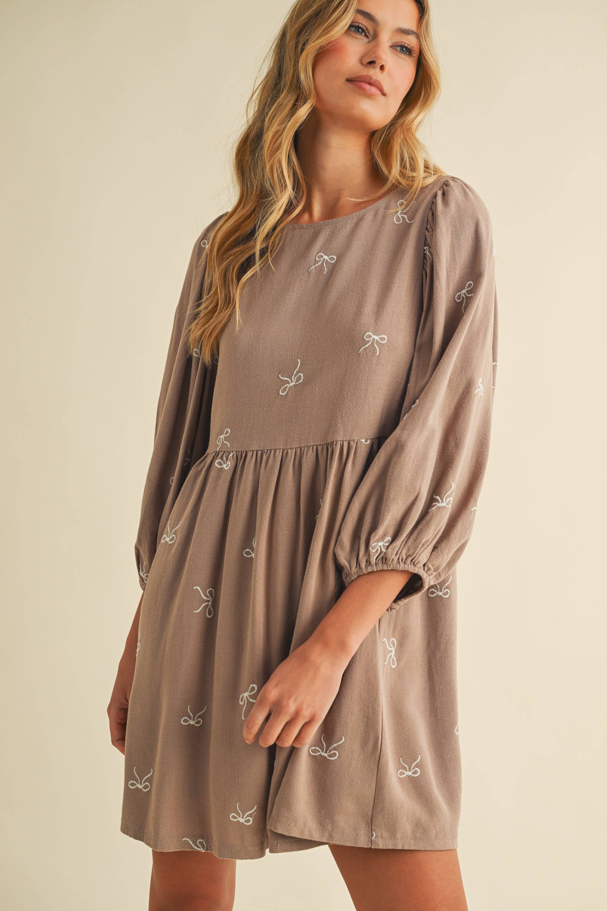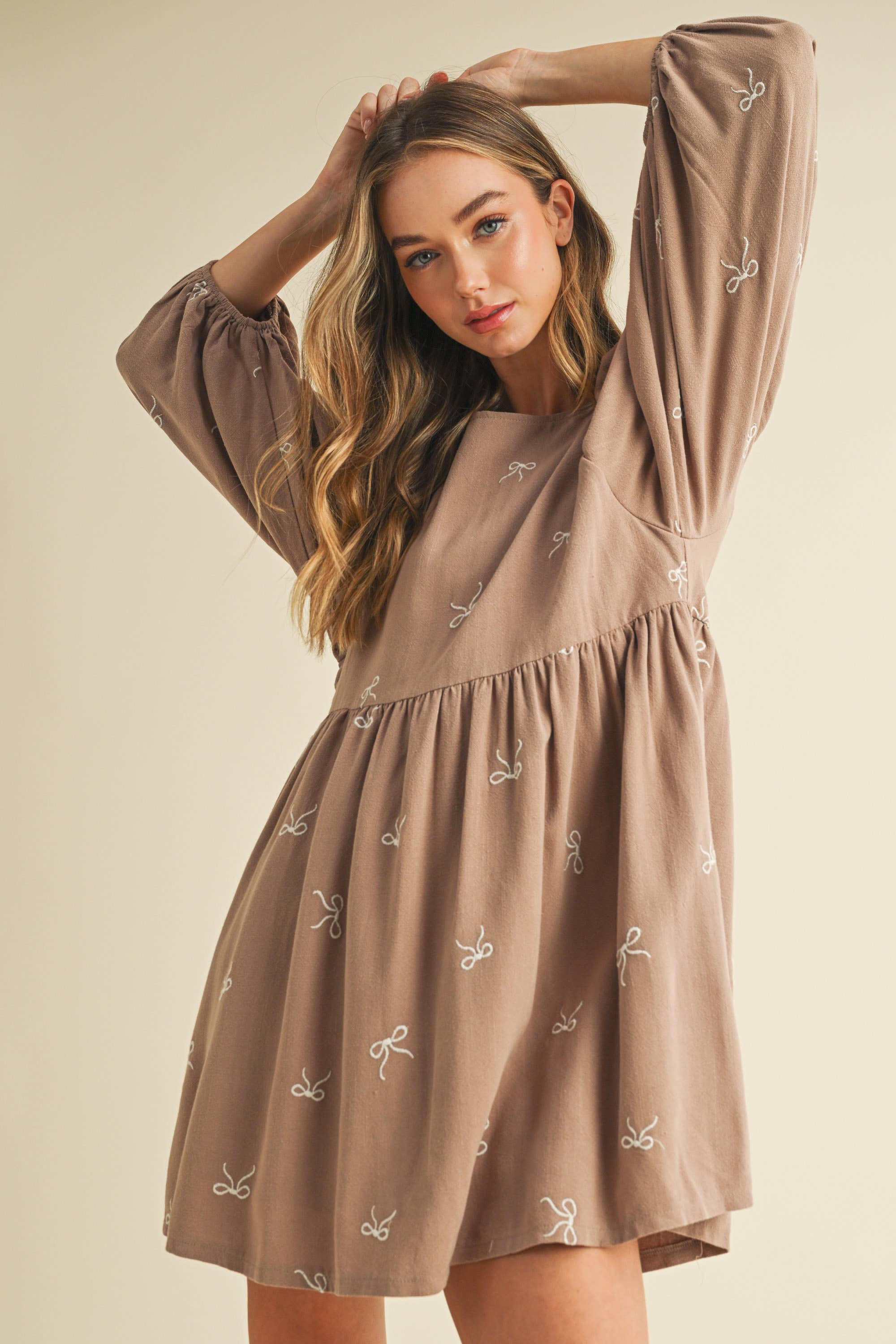 A FLORAL GAUZE PUFF SLEEVES BABYDOLL MINI DRESS