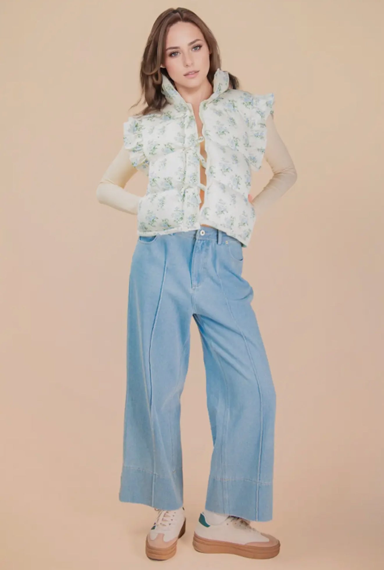 Front Bow Ruffle Sleeve Puffer Vest